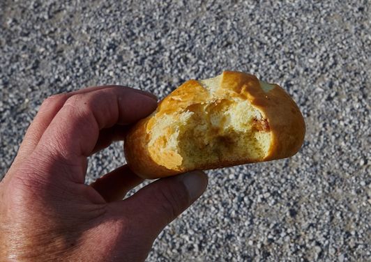 holte ich mir bei der Tankstelle noch ein feines Brötchen.