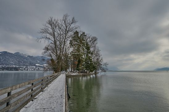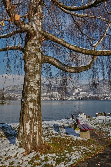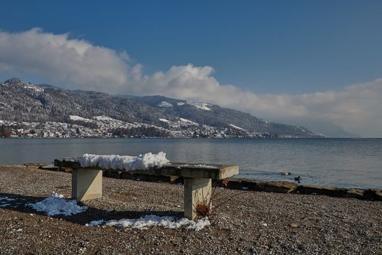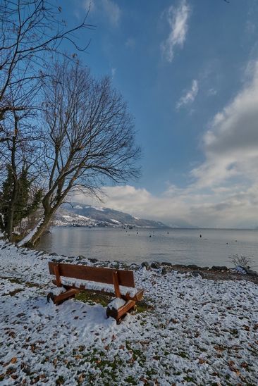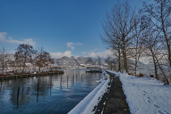 Auch wenn es kalt ist, wollte ich den Schnee am See geniessen.