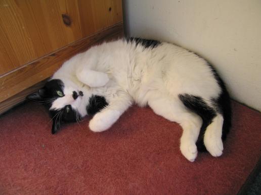 ( Europäische Hauskatze / schwarz weiss )